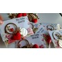 Czerwone serce z różyczkami, perełką oraz przewieszką z napisem "SUPER Babcia"