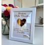 Podaruj białą personalizowaną ramę ze złotym lustrzanym sercem.